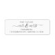 Elegantes und ausgeklügeltes Future Mr. und Mrs. return-Adressetikett mit prächtiger Skriptkalligraphie ergänzt durch minimale, moderne Typografie.