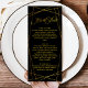 This luxury geometric black-tie wedding dinner menu adds a refined touch to your reception table setting. Featuring elegant gold geometric accents on a deep black background, it creates a sophisticated and modern look. Perfect for formal and upscale weddings, this menu design beautifully complements any black and gold wedding theme.