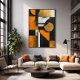 Sophisticated abstract art with bold geometric shapes! Vibrant orange blocks mixed with rich textures of gold and marble. Modern design perfect for high-end interior decoration, magazine covers, and corporate projects. Conveys contemporary elegance and visual strength in every precise line!