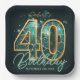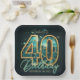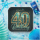 Celebrate a milestone fortieth birthday with these elegant teal and gold agate party plates. The design features a stunning, large "40" filled with a faux turquoise stained glass or geode texture, outlined in printed gold foil effects. Set against a dark, moody background with sparkling bokeh accents, this design exudes sophistication.