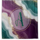 Soft flowing waves of teal and deep purple blend together with shimmering gold sparkles. A stylish abstract pattern with a modern and luxurious feel.
