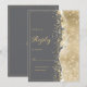 Classy luxury gold sparkle glitter wedding RSVP invitation. Set against a deep green background,