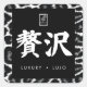 Luxury. Lujo. 贅沢. Quadratischer Aufkleber
