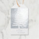 Luxuriöse Frohe Festtage silberne Geschenkmarke. Auf der Vorderseite ist eine Silhouette des Weihnachtsbaumes mit einem Weihnachtsstern oben. Es gibt einen benutzerdefinierten Frohe Festtage-Text und auf der Rückseite ist ein weiterer personalisierter Text.
