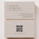 Luxury Natural Brown Linen QR Code Visitenkarte