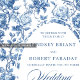 Make a refined first impression with this wedding invitation featuring classic French toile de jouy roses in elegant shades of navy blue, royal blue, dusty blue, and deep blue. Inspired by timeless European floral design, this invitation blends traditional sophistication with modern elegance, perfect for a classic, romantic, or formal wedding celebration.