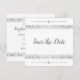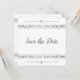 Elegante "Save the Date" Karte mit stilvollem silberfarbenem Trimm. Diese Einladung kann für jede Feier angepasst werden.