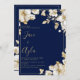 Luxury white gold floral navy blue Wedding Einladung