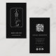 The delicate line art illustration of a yoga pose with moon and stars accents creates a peaceful and spiritual aesthetic that fits modern yoga studios and wellness brands. The back of the card includes space for your name, website, phone number, social media icons, and a customizable QR code, allowing clients to quickly access your booking page, class schedule, or website.