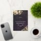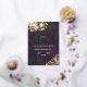 Erleben Sie Ihre Hochzeit mit dieser luxuriösen botanischen Einladung aus schwarzem Samt, die wunderschön strukturiert ist, um das reiche Samt nachzuahmen und mit goldenen Akzenten gekrönt ist. Dieses Design mit seinen blütenschwärzenden Pfannkuchen, seinem gedämpften goldenen Blattwerk und seiner verzierten Goldgrenze verbindet zeitlose Eleganz mit einer Touch gotischen Glamours - perfekt für Abend, schwarze Krawatte oder feierliche Feste. Die samtähnliche Kulisse verleiht dem Ganzen Tiefe, während das goldene Folienskript das Glanz der Details garantiert. Komplett anpassbar und als komplette passende Suite erhältlich, um eine koordinierte und polierte Hochzeitsästhetik zu schaffen.