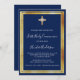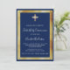 Modernes, elegantes und einladendes Hotel. Ein marineblau mit einem Kreuz dekorierter Hintergrund, Imitate goldene Rahmen. Personalisieren und fügen Sie einen Namen und Details. Weißer Text.