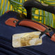 Ein elegantes Gepäckanhänger mit Elfenbein und goldgelbem Marmorboden für Imitate.
