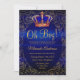 Unsere Luxus Floral Gold Royal Blue Baby Dusche Einladung beeindruckt mit einem zeitlosen königsblauen Hintergrund, bezaubernde goldene Blume mit einer blauen Vintagen Krone, auf der Ihre Details in goldenen Buchstaben zu ihren eigenen kommen. Ihre persönlichen Daten können im Menü Details geändert werden.