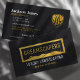 Diese modernen, minimalistisch-ästhetischen Visitenkarten sind mit zwei verschiedenen, individuell gestalteten Logo-Grafiken versehen, die in einer simulierten metallischen Goldfolie auf schwarzem Karton platziert sind und abwechselnd mit Sans und Serifentypografie in Gold, Weiß und cool platinsilber grau dargestellt sind.