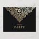 Weihnachten Luxus Party Gold Imitate Foil Card Einladung mit barocken goldenen Dekoration auf schwarzem Hintergrund. Gestalten Sie mit diesem stilvollen Template Ihr eigenes elegantes und raffiniertes Weihnachtsdesign: Typografie, Weihnachtsweih, modernes Party, Goldweih, Goldweih, Dinner-Weihnachten, Neujahr am Party, Weihnachtsbaum.