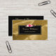 Design für den glamourösen Klienten mit dieser eleganten schwarz-goldenen Designerkarte mit luxuriöser Textilmuster-Visitenkarte mit einem schönen rosa Blumenakzent. Perfektes Design für Kleiderschränke und Mode-Stylist. Flachbild, NICHT texturiert oder reflektiert.