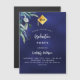 Ein marineblauer blauer Hintergrund mit Grünpflanzen. Die blaue Farbe ist ungleichmäßig. Personalisieren und fügen Sie einen Namen und Party-Details hinzu.