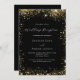 Ein moderner, eleganter Empfang. Schwarzer Hintergrund mit Imitaten goldenen Glitzer Glitzern. Personalisieren und fügen Sie Ihre Namen und Hochzeitsdetails. Weiße Buchstaben.