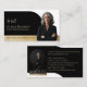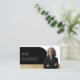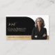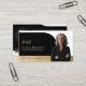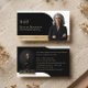 Erzeugen Sie einen bleibenden Eindruck mit unserem eleganten und modernen Visitenkartendesign, das perfekt für Immobilienmakler, Anwaltskanzleien und Geschäftsfachleute geeignet ist, die ein anspruchsvolles und poliertes Erscheinungsbild suchen. Das Design verfügt über eine verfeinerte Farbpalette in Schwarz, Weiß und Gold für ein luxuriöses und zeitloses Gefühl, mit einer stilvollen Bogenform, die Ihr Foto schön einrahmt. Sie können den Hintergrund Ihres Fotos mithilfe der Funktion "Hintergrund entfernen" von Zazzle im Design-Tool-Bereich einfach entfernen, um ein nahtloses und professionelles Finish zu erzielen. Die Vorderseite der Karte bietet Platz für Ihren Namen, Titel und optionalen Text wie "Treffen Sie [Ihr Name]", während die Rückseite ein zweites Foto in einer Bogenform sowie Ihre Kontaktdaten enthält. Ideal für diejenigen, die auf eine verfeinerte Markenbildung Wert legen, kombiniert diese Vorlage Stil, Raff