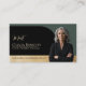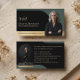 Erzeugen Sie einen bleibenden Eindruck mit unserem eleganten und modernen Businesscard-Design, das perfekt für Immobilienmakler, Anwaltskanzleien und Geschäftsfachleute ist, die ein anspruchsvolles, poliertes Aussehen suchen. Das Design verfügt über eine verfeinerte schwarze, grüne und goldene Farbpalette für ein luxuriöses und zeitloses Gefühl, mit einer stilvollen Bogenform, die Ihr Foto schön umrahmt. Sie können den Hintergrund Ihres Fotos mithilfe der Funktion "Hintergrund entfernen" von Zazzle im Design-Tool-Bereich einfach entfernen, um ein nahtloses, professionelles Finish zu erzielen. Die Vorderseite der Karte bietet Platz für Ihren Namen, Titel und optionalen Text wie "Treffen Sie [Ihr Name]", während die Rückseite ein zweites Foto in einer Bogenform sowie Ihre Kontaktdaten enthält. Ideal für diejenigen, die auf verfeinerte Markenbildung Wert legen, kombiniert diese Vorlage Stil, Raffinesse