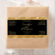 Ein Etikett für Kosmetika und/oder Seifenprodukte mit schwarzem Hintergrund und einem goldenen Glitzer-Rahmen für Imitate. Passen Sie es mit Ihren Geschäfts- und Produktinformationen an.