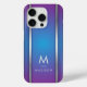 Ein elegantes, luxuriöses, abstraktes iPhone Gehäuse mit violettem und blau geometrischem Design. Personalisieren Sie Ihre Monogramm und Ihren Namen.