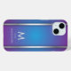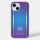 Ein elegantes, abstraktes Handy im luxuriösen Stil mit violettem und blau geometrischem Design. Personalisieren Sie Ihre individuelle Monogramm und Ihren Namen.