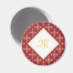 Ein luxuriöser, roter und goldener Vierpunkt-Vierpunkt-Blumenmuster-Magnet, der durch Hinzufügen Ihres Monogramms personalisiert werden kann. Dieses elegante, Vintage mit Monogramm Damast-Design wird Ihre raffinierte Seite hervorheben. Flachbild, nicht metallisch.