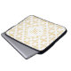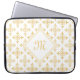 Ein luxuriöses weißes und goldenes 4-Punkt-Vierpunkt-Blumenmuster 15-Zoll-Laptop-Ärmel, das durch Hinzufügen Ihres Monogramms personalisiert werden kann. Dieses elegante, Vintage mit Monogramm Damast-Design wird Ihre raffinierte Seite hervorheben. Flachbild, nicht metallisch.