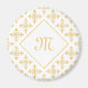 Ein luxuriöser weißer und goldfarbener Vierpunkt-Vierpunkt-Blumenmuster-Magnet, der durch Hinzufügen Ihres Monogramms personalisiert werden kann. Dieses elegante, Vintage mit Monogramm Damast-Design wird Ihre raffinierte Seite hervorheben. Flachbild, nicht metallisch.