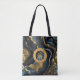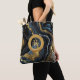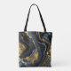 Verleihen Sie Ihrem täglichen Stil mit dieser anspruchsvollen und künstlerischen Navy Blue & Gold Achat-Marmor-Monogramm-Tasche einen neuen Höhepunkt. Dieses Design verfügt über einen faszinierenden abstrakten Fluid-Art-Hintergrund, der das Aussehen von tiefen Ozeanwellen, dunklem Geodenstein und flüssigem Marmor nachahmt. Die reiche Palette aus Mitternachtsblau, Kohlegrau und wirbelnden Grautönen wird dramatisch durch Adern aus schimmernden falschen Goldfolientexturen hervorgehoben.
