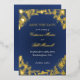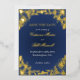 Luxus-Save-the-Date-Karte mit navyblauem Hintergrund und echter Goldfolie mit floralem Muster, umgeben von eleganten, schimmernden Goldfolienkonturen. Perfekt, um Ihre Hochzeitsdatum und -ort Ihren Gästen mit einer Aussage von Opulenz und moderner Sophistikation bekannt zu geben. Einfach anpassen, um Ihrem glamourösen oder modernen Luxus-Hochzeitsthema zu entsprechen. Siehe passende Kollektion in La_Promesse.