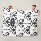 Luxus Schwarz-Weiß-Monogramm-Damast Fleecedecke