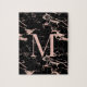 Luxus Schwarzer Marmor Rose Gold Foil Monogramm Puzzle