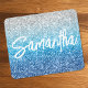 Girly Glam Mauspad für ihre Arbeitsstation mit einem luxuriösen Imitat Glitzer mit Funkeln. Die Farbtöne in den Imitate Glitzer digitale Kunst sind Silber, Grau, Aqua, Azurblau, Blau und leichte Marine. Der Name zeichnet sich durch einen modernen, weißen, handgeschriebenen Schreibstil aus. Passen Sie die Farbe, Größe und den Stil des Schriftartes in diesem Textdesign an. Im System finden Sie eine Handvoll kühner, moderner Kalligraphieskripte. Bei kürzeren Namen können Sie die Größe des Schriftartes erhöhen.