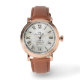 Luxus-Roségold- und Braunes-Leder-Herrenarmbanduhr | Personalisierte Marmor-Römische-Ziffern-Erinnerung für Ehemann oder Bräutigam.
