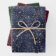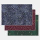 Elegante, festliche und schicke Weihnachtsgeschenk-Wrapping Sheets in drei Farben: festes Grün, dunkelblau und tiefburgundes Rot mit goldenen Sternen Muster.