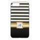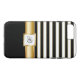 Kundenspezifischer Monogramm smartphone Fall mit den Luxusgold angeredeten Entwurfselementen, die auf der Abdeckung gedruckt werden und lässt Sie Ihr Zellentelefon in der Art tragen, die ein Weiß und ein Goldstreifenmuster umfaßt.