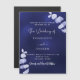 Marineblau, mit Eukalyptusstemmen dekoriert, mit Sprigs. Die blaue Farbe ist ungleichmäßig. Personalisieren und fügen Sie Ihre Namen und die Details.