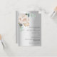 Ein Imitat silber aussehender Hintergrund. Weiße Blume, Blumen, Eukalyptusgrün. Personalisieren Sie Ihre Namen und Details und fügen Sie diese hinzu.