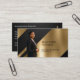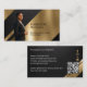 Erzeugen Sie einen bleibenden ersten Eindruck mit unserer Luxus-Schwarz-Gold-Vorlage für Visitenkarten, die für Fachleute konzipiert ist, die Eleganz und Raffinesse verlangen. Mit einem Hintergrund aus falschem schwarzen Leder und goldenen Streifenakzenten strahlt diese Vorlage königlichen Charme und Luxus aus. Die Vorderseite der Karte bietet Platz für Ihr Geschäftsporträt, Ihren Namen und Ihre Berufsbezeichnung, umrahmt von sauberen, luxuriösen goldenen Akzenten. Die Rückseite setzt das Faux-Leder-Thema fort, mit eleganten goldenen Streifen, einem ordentlich organisierten Layout für Ihre Kontaktdaten und einem Platzhalter für einen QR-Code, perfekt, um Kunden direkt mit Ihrer Website oder Ihrem Portfolio zu verbinden. Ideal für Luxus-Immobilienmakler, Anwälte, Rechtsanwälte, Finanzberater, Inhaber von Boutique-Unternehmen und andere hochkarätige Dienstleister, kombiniert diese Visitenkarte zeitlose Eleganz mit moderner Funktionalität. Passen Sie alle