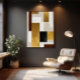 Eine geometrische Zusammensetzung aus goldfarbenen und braunen Würfeln, die perfekt harmonieren. Die minimalistische und elegante Kunst spiegelt Reichtum und Raffinesse wider und macht sie zu einem perfekten Kunstwerk für moderne Umgebungen.