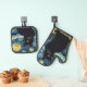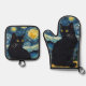 Luxusküche: Black Cat Starry Night Van Gogh Ofenhandschuh & Topflappen-Set
