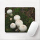 Eine Gruppe lycoperdons, Puffballpilze, in einem deutschen Wald.