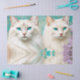 Türkisfarbener Hintergrund, alte weiße Blume und eine schöne Flamme Lynx Point Siamese Katz KI Kunst von minx267