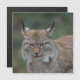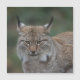 Ein Luchs, der auf etwas Holz ruht und direkt auf Sie schaut. Die Katze mit Haartufts auf ihren Ohren.
