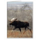 Bull Elche Karte vertikal. Ein großer Bullenmuschel schlängelt sich durch die Busche in einem Sandhügelgebiet im Süden von Alberta, Kanada. Elche scheint in diesem trockenen, sandigen Gelände fehl am Platz, das sehr wenig Wasser hat, um die Wasservegetation Elche zu stützen, die normalerweise gefüttert wird.