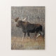 Stier-Elch-Puzzlespiel. Ein großer Stier, den Elch seine Weise donnert, warf die Bürste in den Sandhügeln von Südalberta, ich könnte ihn hören, von einem beträchtlichen Abstand zu kommen.