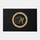 M goldenes Monogramm auf schwarzem Hintergrund mit goldenem Rahmen.