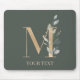 Letter M monogramm floral. Letter M in goldbrauner Textur mit grünen Aquarellfarben Blätter, Blume Blüten und Goldstaub. Personalisieren Sie mit Namen im passenden Schriftart.